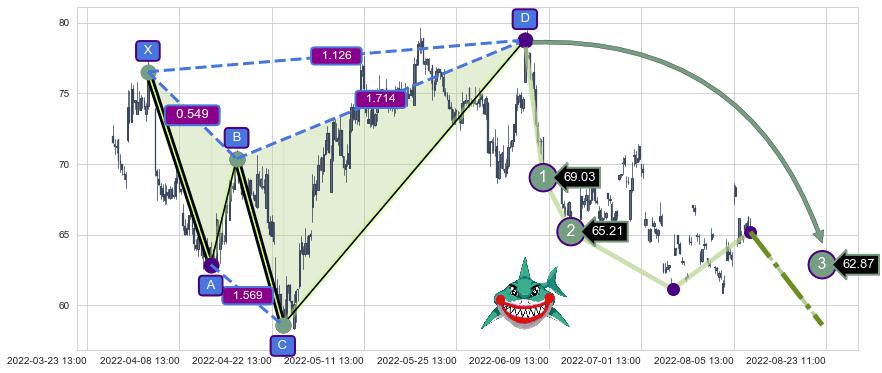 ➣ 已完成【鲨鱼】形态起点X: 04-01:10, 终点D: 06-07:09, 共205交易小时