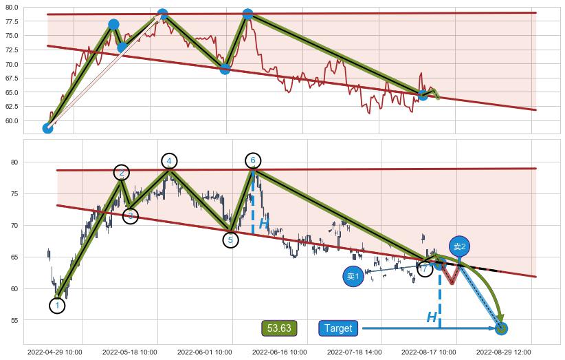 ➣ 【仅预测突破】最后价格:65.20与预测突破价格:63.93→【空间临近】后续最小【反转】第一目标价格→(08-24:10: 53.63 )