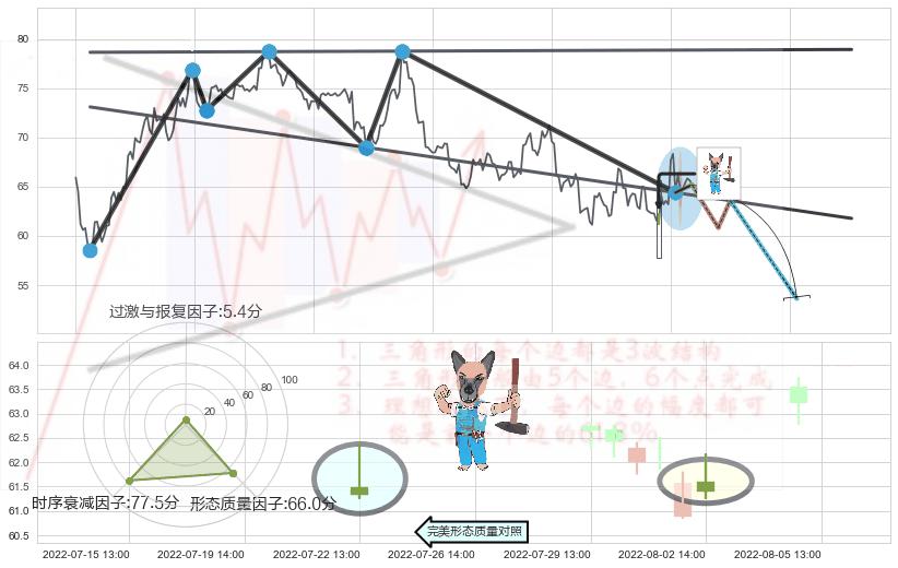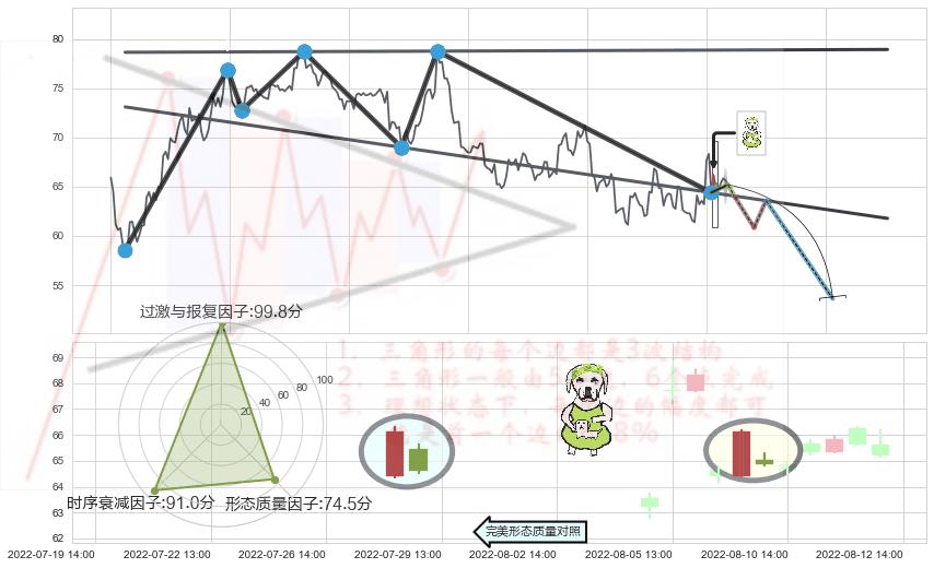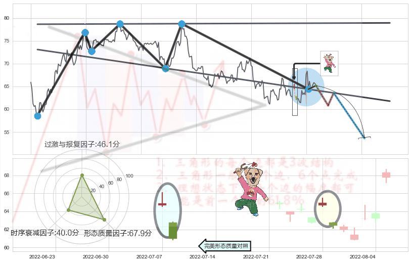 ➢ 下跌螺旋桨 🔜 扩散三角反转临近支撑猜想转换阻力下跌 综合量化分数:45.62 【偏空】