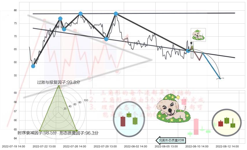 ➣ 下跌螺旋桨 + 扩散三角反转临近支撑猜想转换阻力下跌信号叠加后【目标达成率】中等,【看空】信号叠加【存续影响中等】