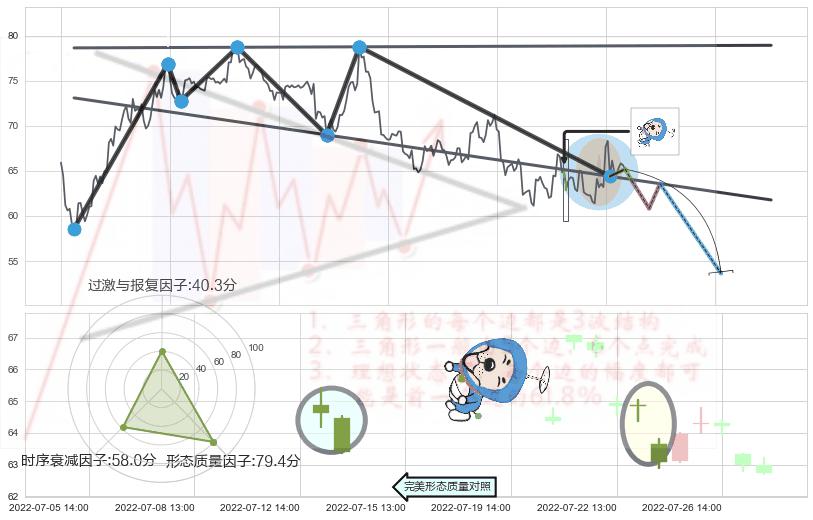 ➢ 🕰 价格走势在2022-07-22 14:00:00至2022-07-25 13:00:00期间形成下跌螺旋桨,残存影响值:-4.63