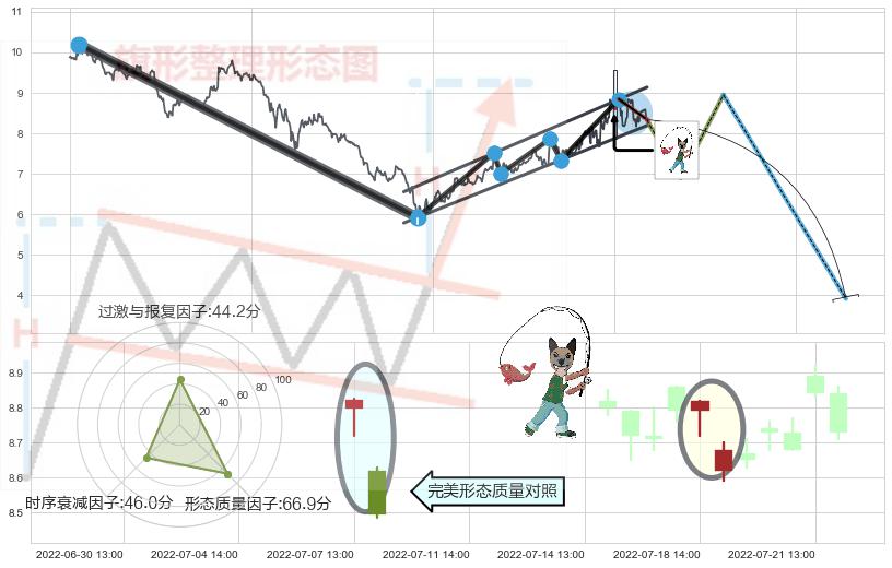 ➢ 🕰 价格走势在2022-07-18 14:00:00至2022-07-19 13:00:00期间形成吊颈线(上吊线),残存影响值:-4.44