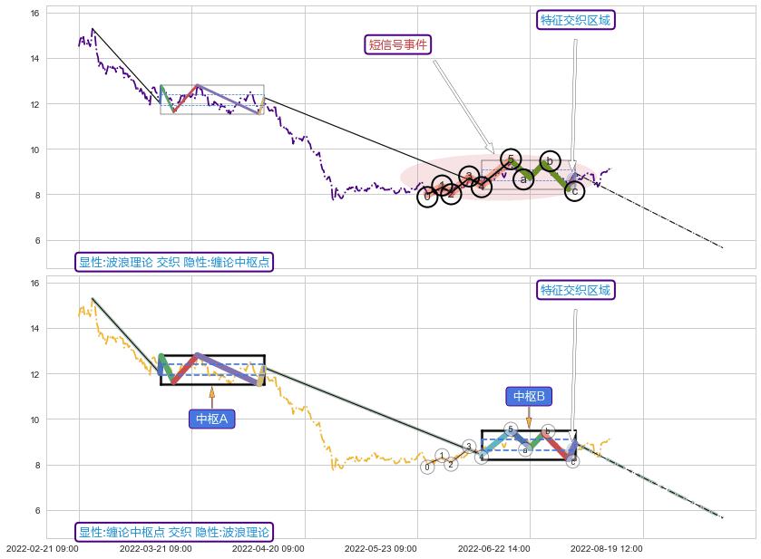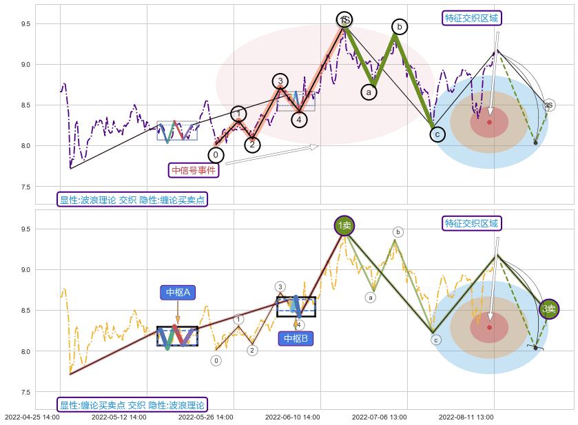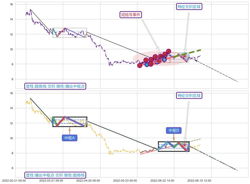 ➣ 缠论中枢点:猜想破位中枢B后持续下拉 → 下跌 → 破位中枢B支撑 → 持续趋势跟踪