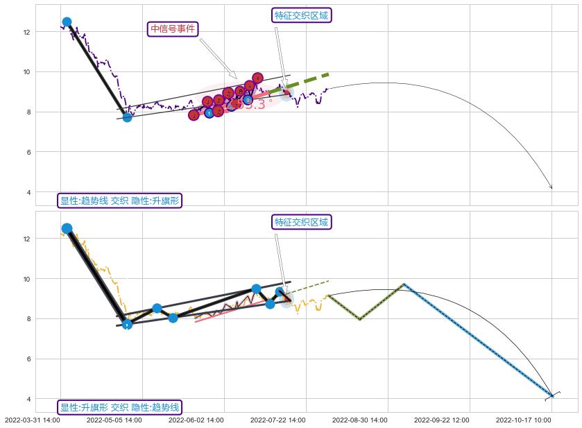 ➢ 趋势线属【短级别信号事件】缠论中枢点属【长级别信号事件】长短周期组合信号事件, 短长事件长度比23.43%