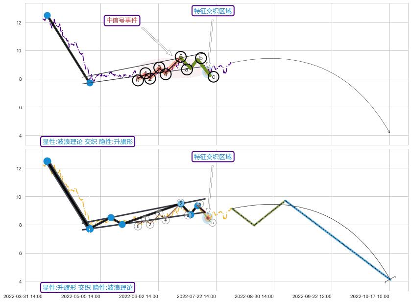 ➣ 波浪理论:猜想击穿破位c点后继续下跌 → 下跌 → 风险信号 → 小趋势跟踪