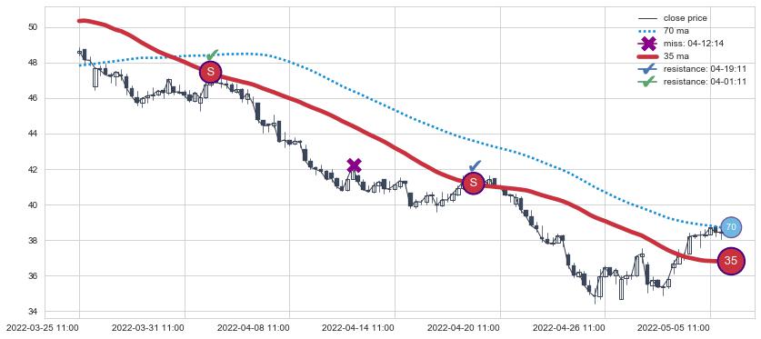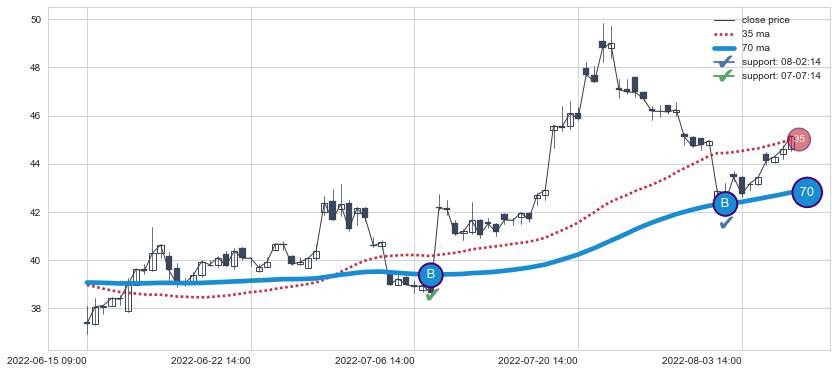 ➢ 70小时均线于(06-17 10:00: 39.06)形成【金叉】基于【金叉历史模型】预测金叉后最高波峰价格: 42.30, 金叉后最高价格48.99,已经上涨超出预测最高波峰价格, 预期回调