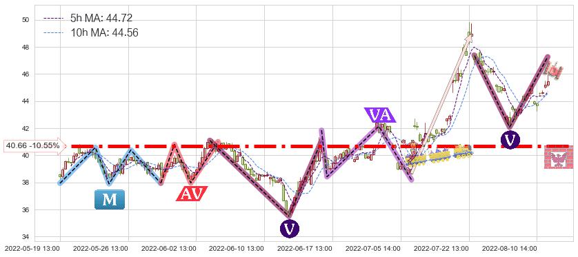 ♘ 支撑价格位40.66,可信任强度99.00%,距离最后交易2022-08-12 14:00形成的收盘价格45.46相差 -10.55%
