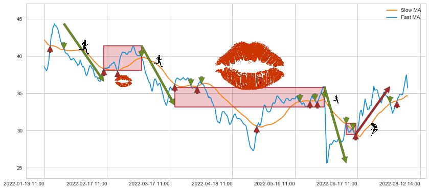 06-01 14:00至06-13 14:00 慢线与快线呈空头排列, 慢线与快线接触少,无缠绕