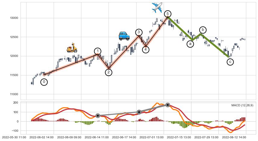 ➣ 第一, 三, 五浪上涨动能逐渐【增强变大】,趋势不断加固
