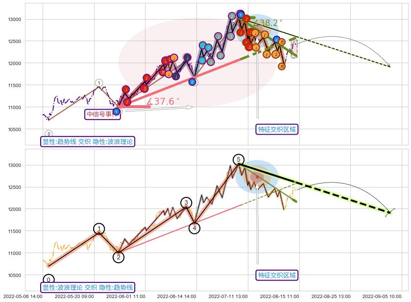 ➢ 循环浪继续向上【最低】位置(09-01:14, 13113.51),匹配聚类样本比例14.43%, 可能性概率9.12%