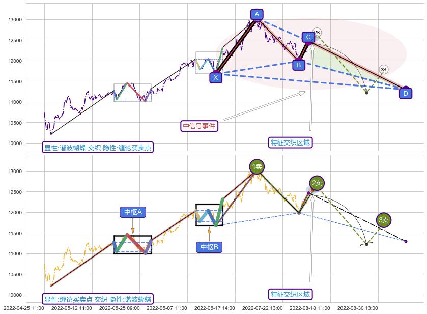 ➣ 缠论买卖点:猜想2卖持续蓄力下跌至3卖 → 下跌 → 风险信号 → 小趋势跟踪