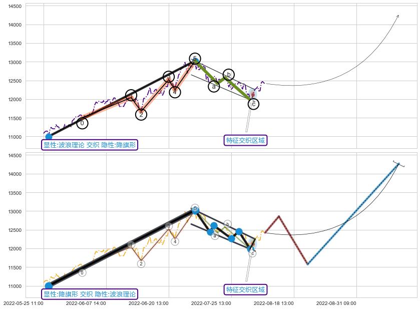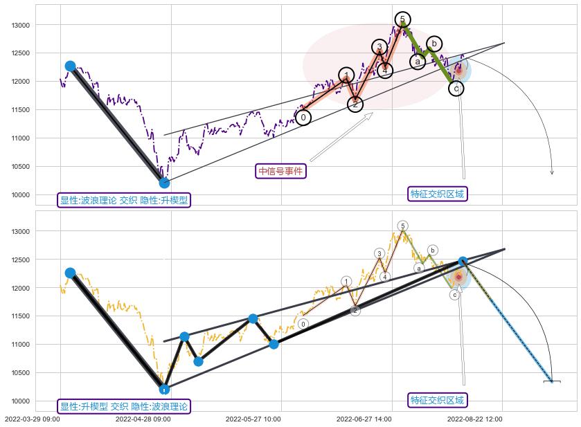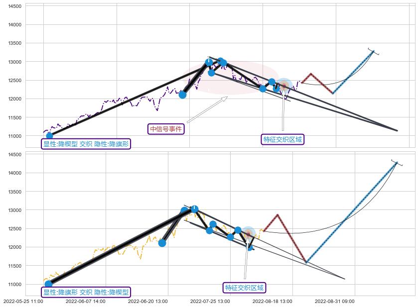 ➢ 波浪理论与降旗形信号事件周期长度级别相同,同周期信号事件