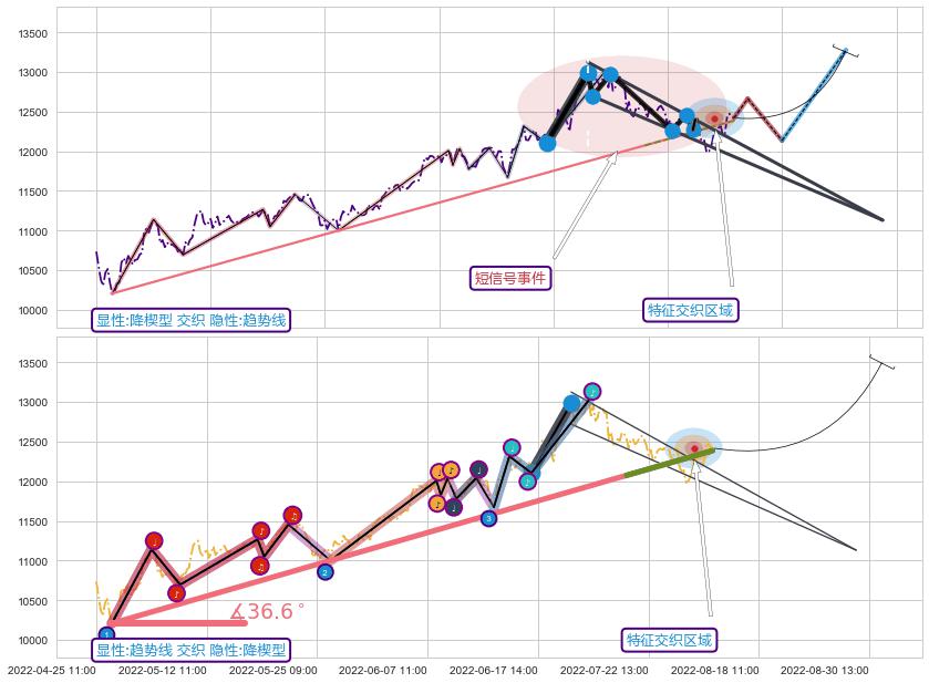 ➢ 降楔型与趋势线信号事件周期长度级别相同,同周期信号事件