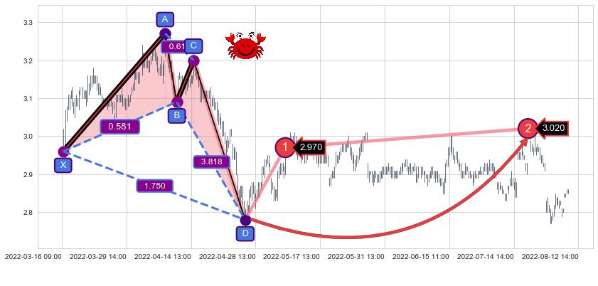 ➣ 已完成【螃蟹】形态起点X: 03-16:10, 终点D: 04-27:09, 共142交易小时