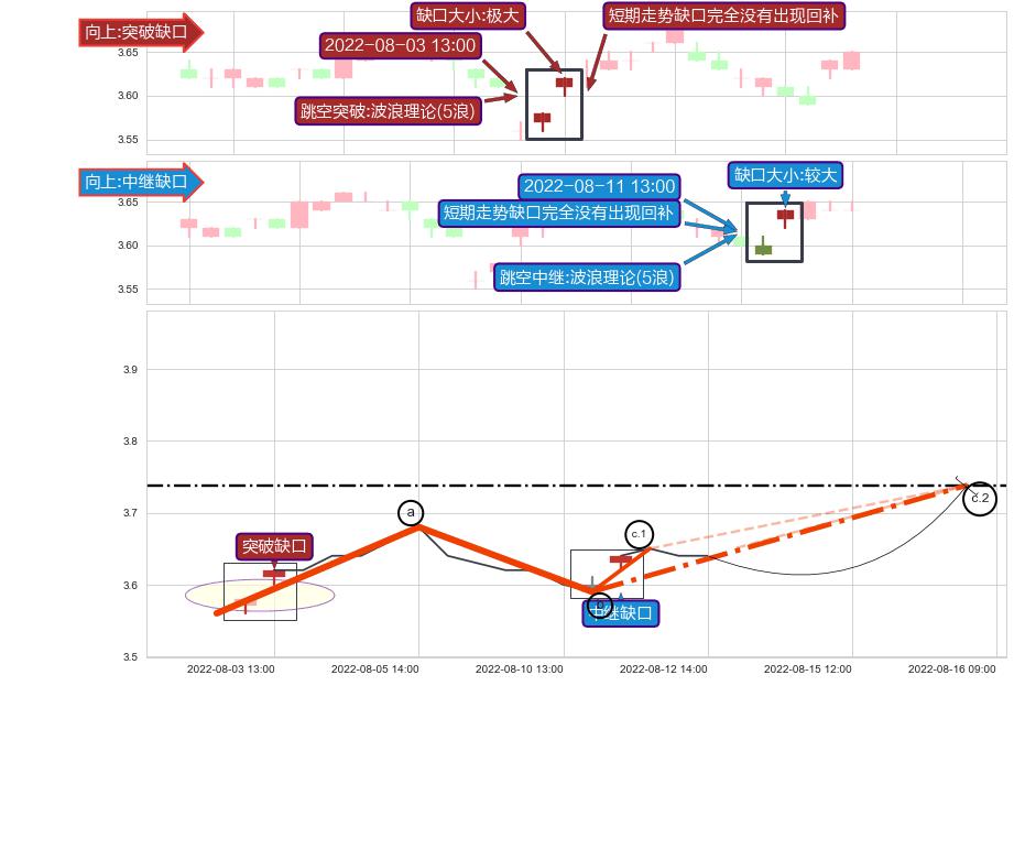 ➢ 2022-08-11 13:00形成:向上跳空【中继】缺口