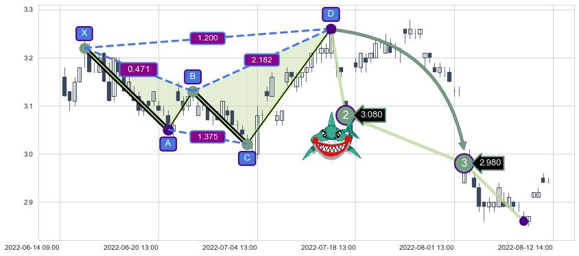 ➣ 已完成【鲨鱼】形态起点X: 06-15:09, 终点D: 07-13:14, 共51交易小时