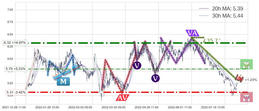 ♞ 20小时均线:5.39,30小时均线:5.44→ 快线<慢线