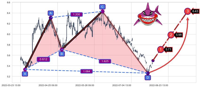 ➣ 已完成【鲨鱼】形态起点X: 03-28:09, 终点D: 08-03:14, 共334交易小时