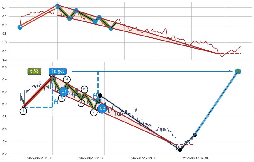 ➣ 高点影线(08-02:14: 5.38 )→回踩→第二根k线高点(08-02:13: 5.35 )