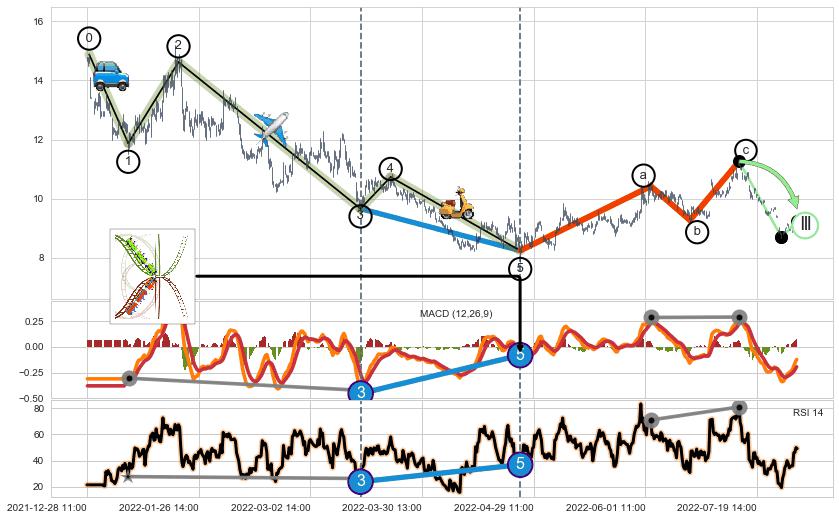 ➣ a,c调整浪MACD, RSI, KDJ走势都【未出现】背离,abc走势延续, 5浪反转概率增强