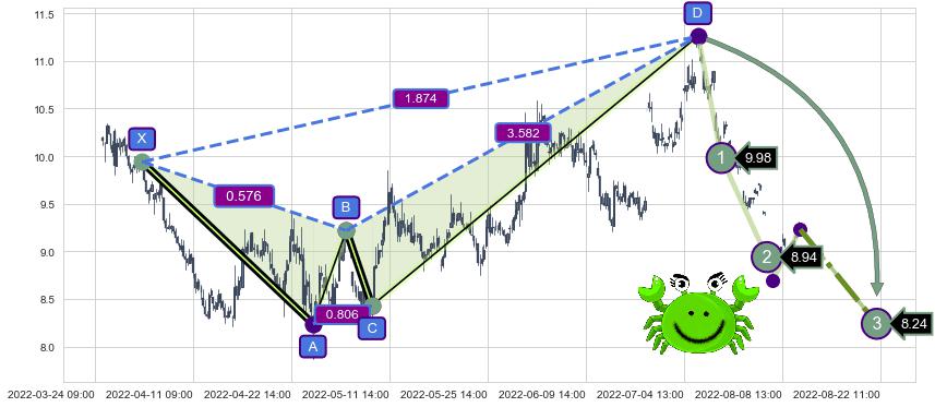 ➣ 已完成【螃蟹】形态起点X: 03-30:14, 终点D: 07-07:14, 共284交易小时