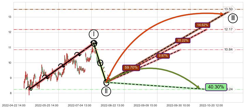 ➣ 循环浪继续向上【平均值】位置(10-11:11, 12.17),匹配聚类样本比例59.00%, 可能性概率35.22%