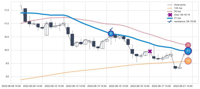 ⚂ 2022-07-07 13:00:00-小时均线向下破位,2022-07-18 13:00:00-小时重新上穿突破均线,均线支撑再次生效
