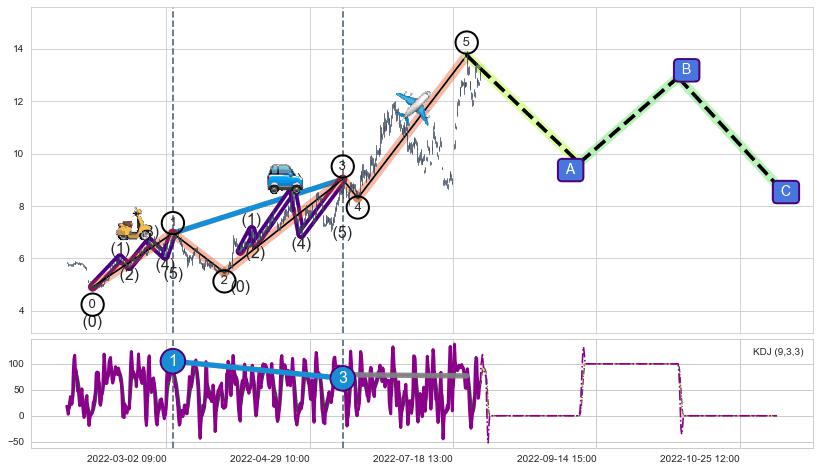 ➢ 缠论价格❶卖比A点高 ⤴,【KDJ】指标B点比A点低 ⤵️