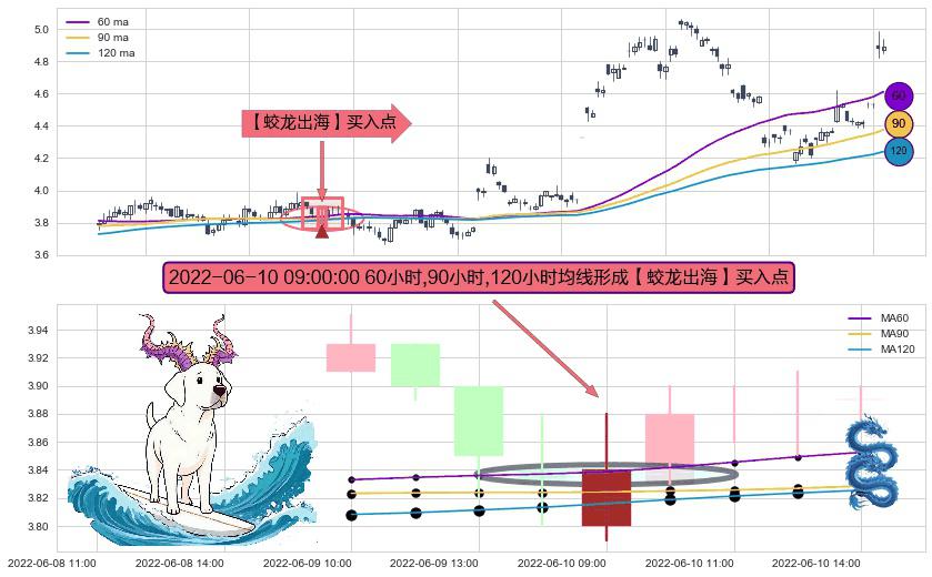 ⚀ 2022-06-10 09:00:00小时显现 60小时-90小时-120小时均线 【蛟龙出海】买入点 看多信号,后市看涨,买入