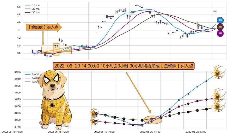 ⚀ 2022-06-20 14:00:00小时显现 10小时-20小时-30小时均线 【金蜘蛛】买入点 看多信号,后市看涨,买入