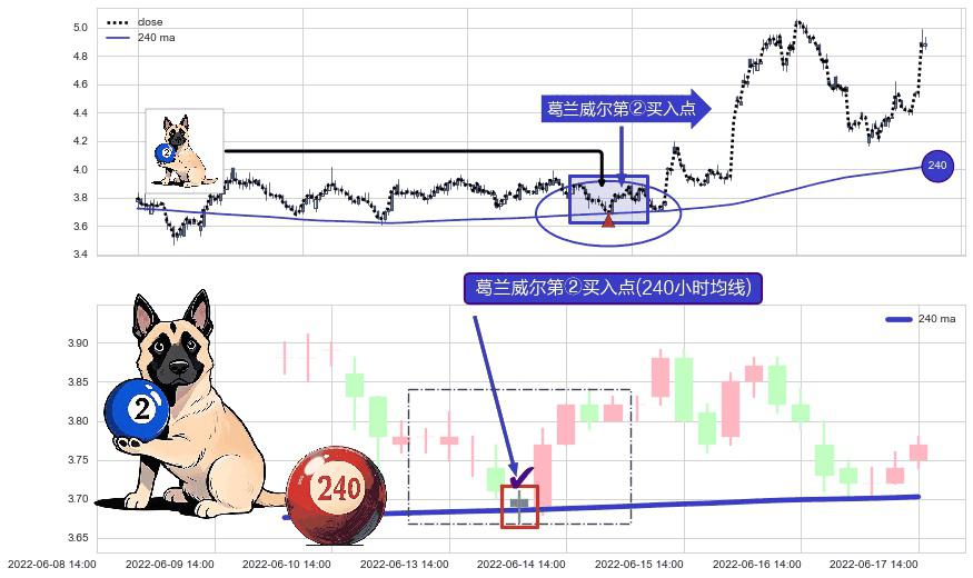 ⚀ 2022-06-14 11:00:00-小时显现 葛兰威尔均线 240小时均线 第②买入点 上升趋势的中继信号,后市看涨,买进信号