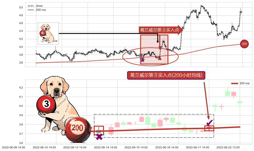 ⚀ 2022-06-17 14:00:00-小时显现 葛兰威尔均线 200小时均线 第③买入点 上升趋势的中继信号,后市看涨,买进信号