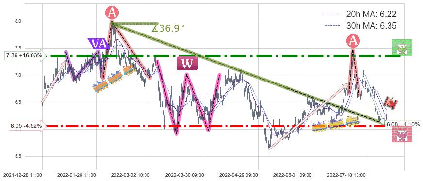 ♞ 20小时均线:6.22,30小时均线:6.35→ 快线<慢线