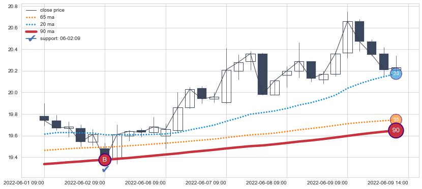 ⚀ 2022-06-14 14:00:00小时显现 60小时-90小时-120小时均线 【鱼跃龙门】买入点 看多信号,后市看涨,买入