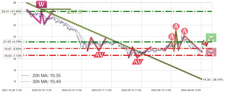 ♞ 20小时均线:19.35,30小时均线:19.49→ 快线<慢线