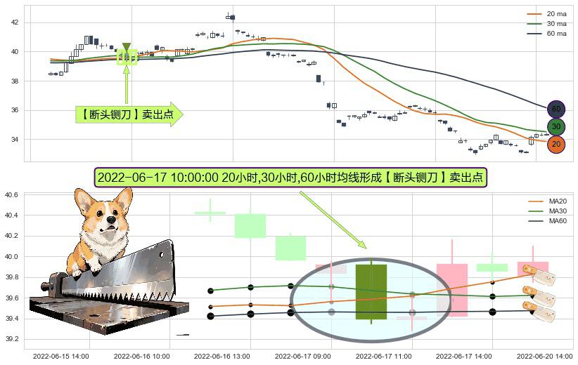 ⚀ 2022-06-17 10:00:00小时显现 20小时-30小时-60小时均线 【断头铡刀】卖出点 看空信号,后市看跌,卖出