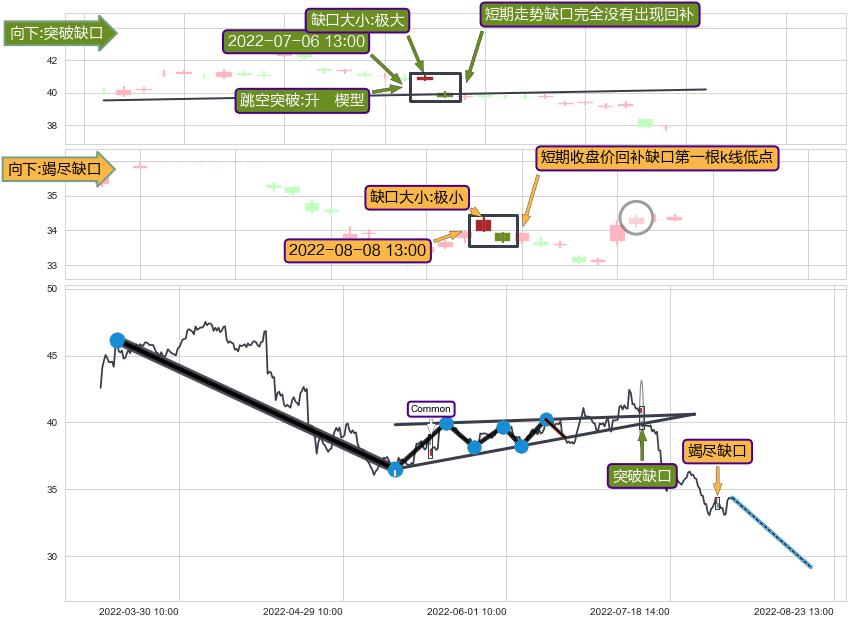 ➢ 2022-08-08 13:00形成:向下跳空【竭尽】缺口