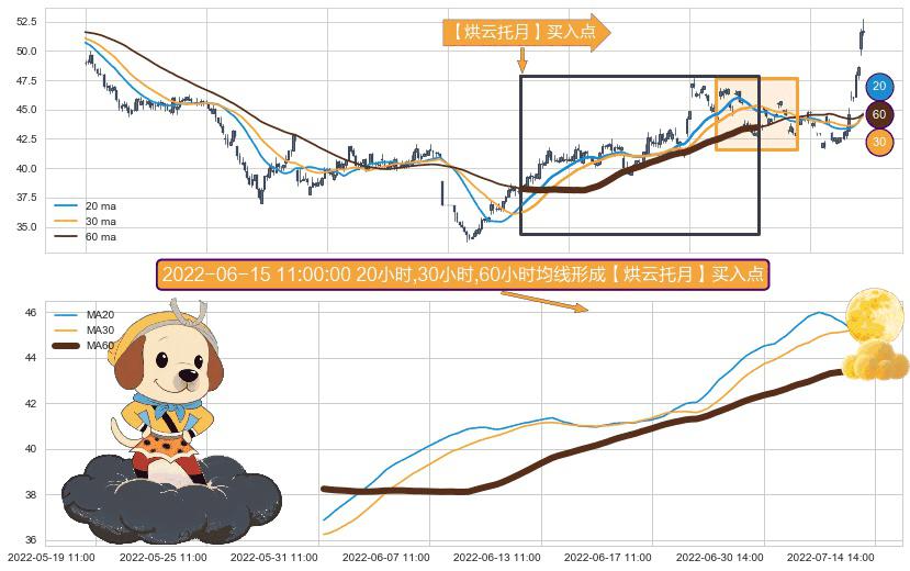 ⚀ 2022-05-31 13:00:00小时-2022-07-13 14:00:00小时显现 20小时-30小时-60小时均线 【烘云托月】买入点 看多信号,后市看涨,买入