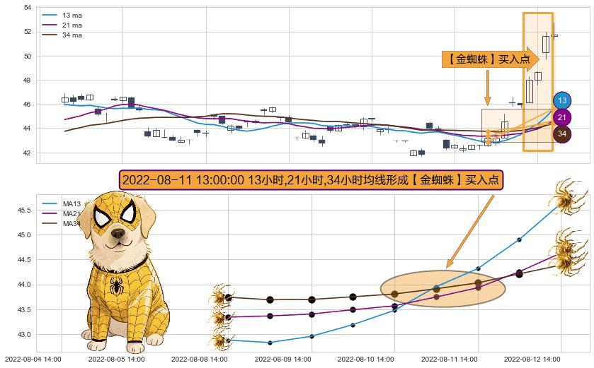 ⚀ 2022-08-11 13:00:00小时显现 13小时-21小时-34小时均线 【金蜘蛛】买入点 看多信号,后市看涨,买入