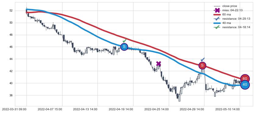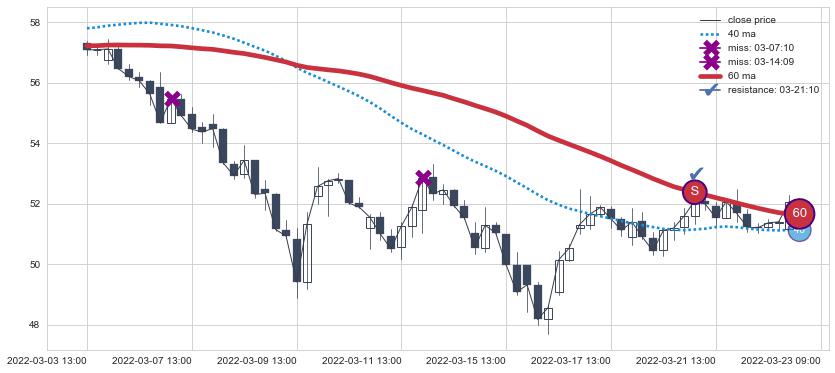 ⚂ 2022-08-02 13:00:00-小时均线向下破位,2022-08-08 14:00:00-小时重新上穿突破均线,均线支撑再次生效