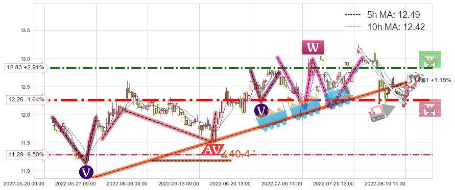 ➢ 【仅预测突破】最后价格:12.47与预测突破价格:12.71→【空间中等】后续最小【反转】第一目标价格→(08-16:10: 13.19 )