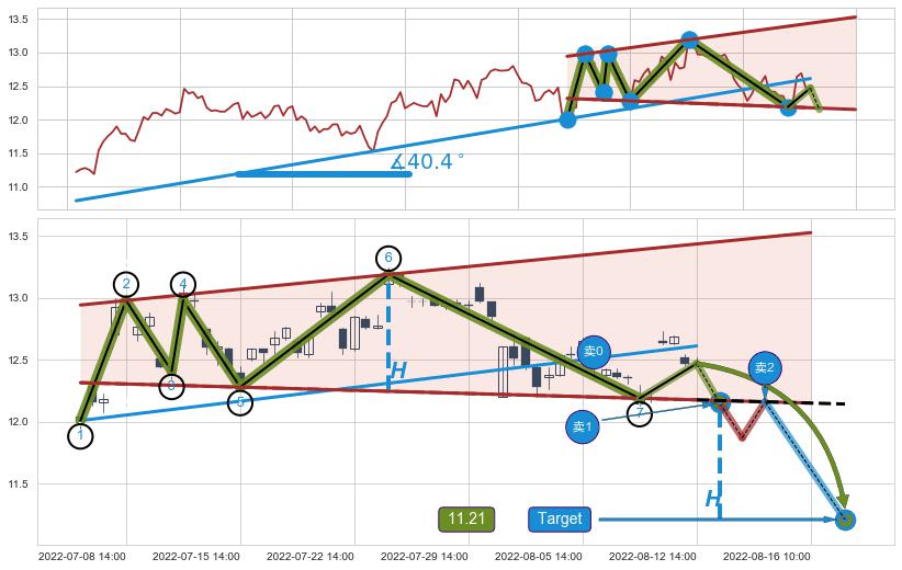 ➢ 【仅预测突破】最后价格:12.47与预测突破价格:12.83→【空间临近】后续最小【整理】第一目标价格→(08-16:15: 13.80 )