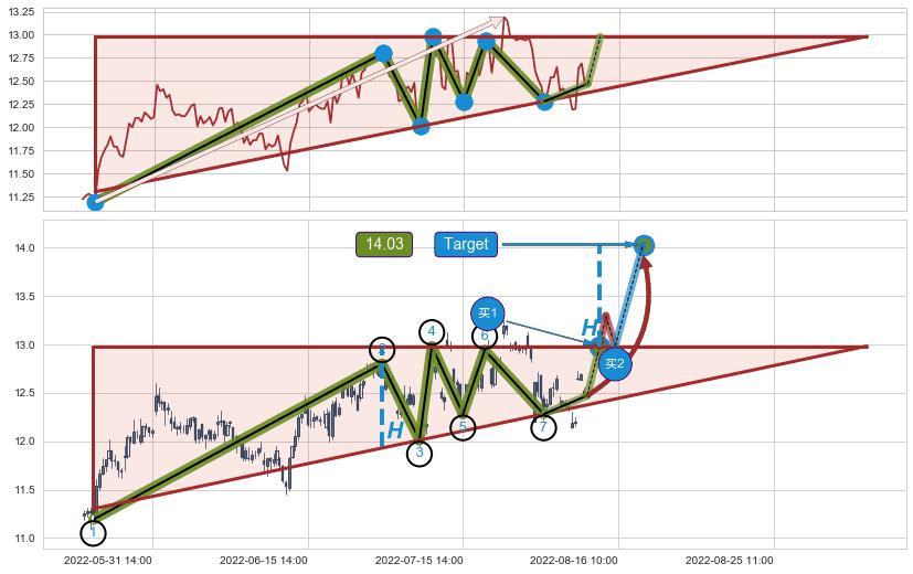 ➣ 最小中继整理涨幅→𝐇: 0.9700 (𝐇旗杆的长度:旗杆起点→顶点)