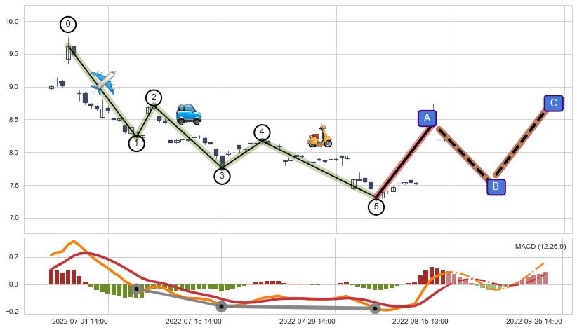 | 3 🅚:上涨两颗星 | 上涨三颗星 ➕ 🌊:波浪理论猜想下跌浪5已形成,猜想后续形成abc反弹上涨(均值回复) ☞ 看多信号 ⇥ 【🅚线】交织【图形】⇥ 综合量化分数: 52 | > |