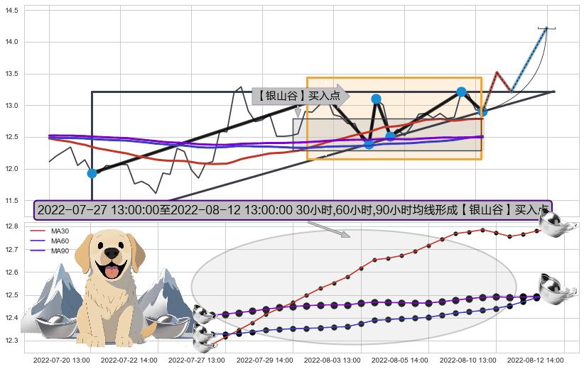 ➢ 【仅预测突破】最后价格:12.90与预测突破价格:13.21→【空间中等】后续最小【整理】第一目标价格→(08-16:09: 14.22 )