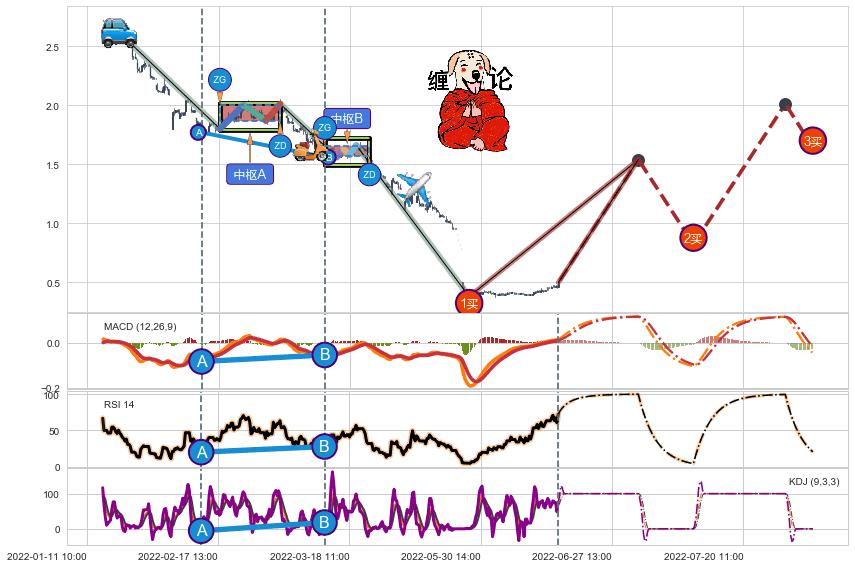 | 12 🅚:【高山滑雪】买入点 ➕ ☯️:缠论买卖点下降缠中枢AB形成后猜想拐点1买已到达,猜想后续持续拉升(均值回复) ☞ 看多信号 ⇥ 【均线】交织【图形】⇥ 综合量化分数: 52 | > |