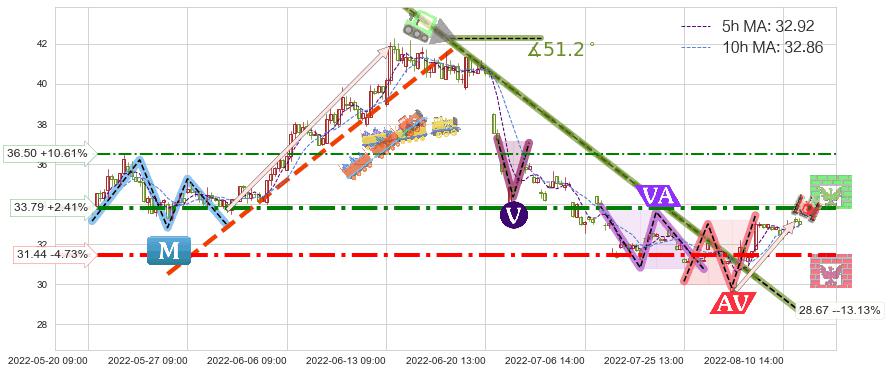 ♘ 阻力价格位33.79,可信任强度79.79%,距离最后交易2022-08-12 14:00形成的收盘价格33.00相差 +2.41%