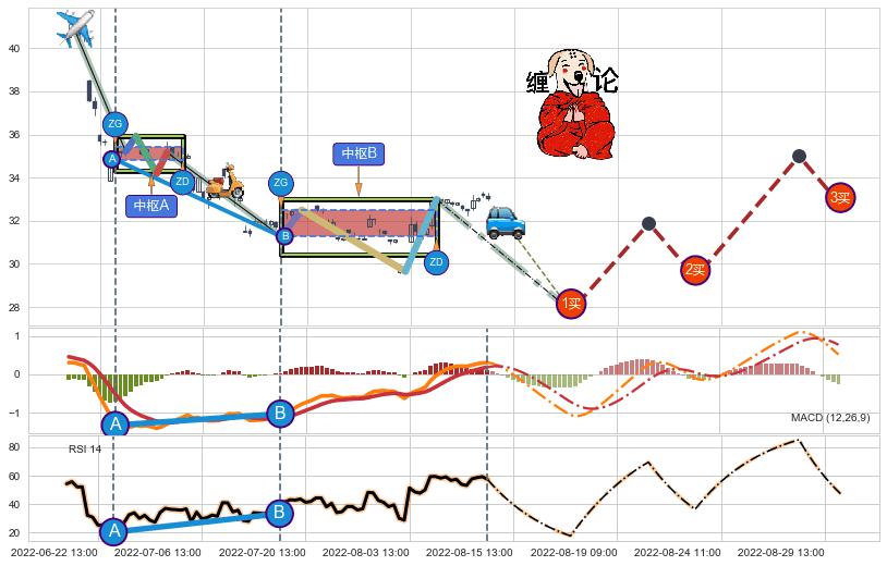 ➣ 【未完成】缠论 起点:06-17:14, 完成第1中枢A,完成第2中枢B,到达08-12:14