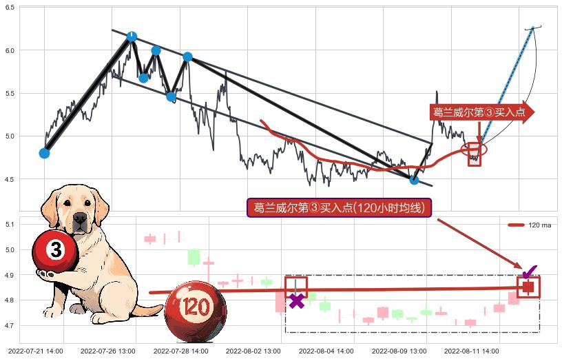 | 5 🅚:葛兰威尔第③买入点 ➕ 🌊:波浪理论下跌5浪延续反弹:猜想回调C点击穿突破,猜想持续蓄力反弹abc上涨方向(大周期趋势均值回复后小周期持续趋势跟踪) ☞ 看多信号 ⇥ 【均线】交织【图形】⇥ 综合量化分数: 58 | > |