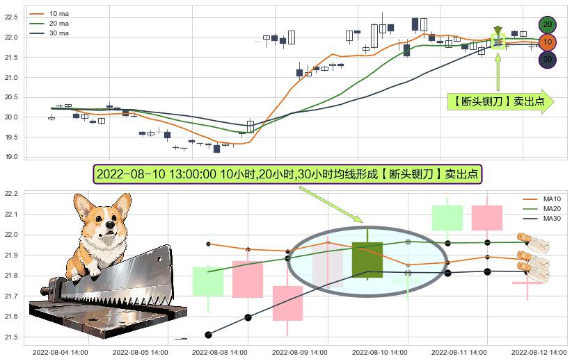⚀ 2022-08-10 13:00:00小时显现 10小时-20小时-30小时均线 【断头铡刀】卖出点 看空信号,后市看跌,卖出